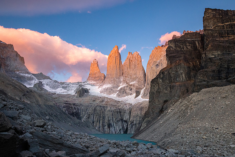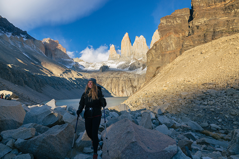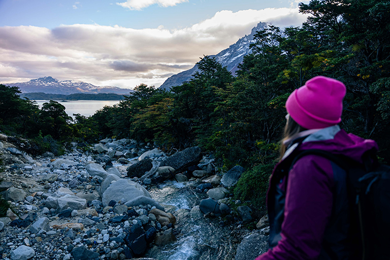 It is early in the morning. Fresh air washes over your face. An orange mountain glow introduces a majestic horizon dotted with forests, lakes and snow-capped peaks. The environment is calm, but inside, you feel butterflies. You tie your shoes, feeling like a child again. Your adventure in Torres del Paine, Patagonia, Chile is beginning.