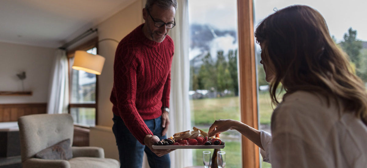 After a day filled with the excitement of seeing wildlife and the inspiring, raw beauty of Torres del Paine, you’ll want to take a hot shower, lie down and put up your feet. In this moment of relaxation, you can process the day’s events and let your soul mirror the stillness of the Paine Massif that towers outside the room’s large window. Or, soak in a bubbly jacuzzi, which also features a mountain view. The Junior Suite features traditional Patagonian artefacts made by local craftsmen and women.