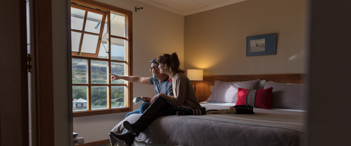 A charming space to relax, recharge and revitalize your energies. The days in Patagonia fill your mind and soul with beautiful intensity. There are so many sights, which produce so much excitement, that you’ll need a moment to lie down and assimilate the day’s activities, truly absorbing the colors, smells, and majestic views. The wooden decor and warm color palette of the room will create the right ambiance for this occasion for contemplation. The large windows frame the mountains or the pampas, and you might even spot the baqueanos taking out or bringing in the horses. Our Superior Rooms are ideal for families.